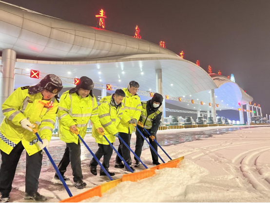 (胶东机场收费站进行人工除雪)