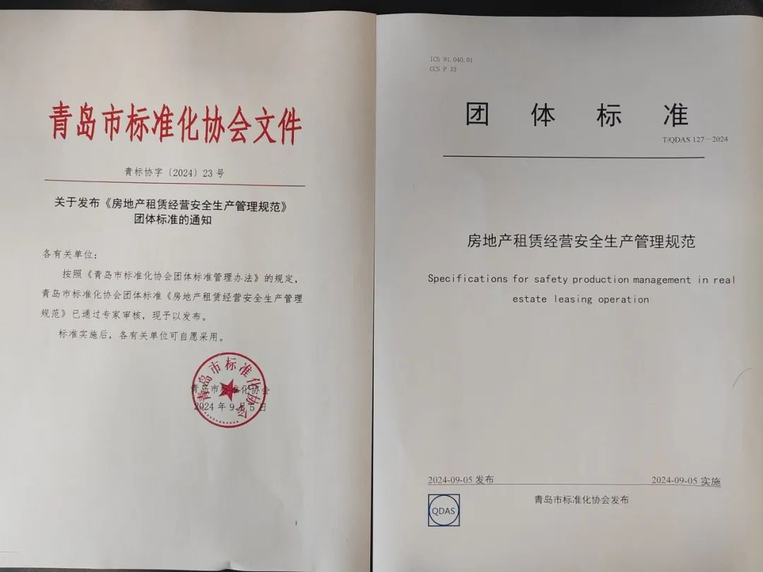 近日,由星空(中国)安企部和城投集团旗下商管集团主编的青岛市团体标准《房地产租赁经营安全生产管理规范》(T/ODAS 127-2024)(以下简称《规范》),通过青岛市标准化协会审核,于2024年9月5日正式发布实施。