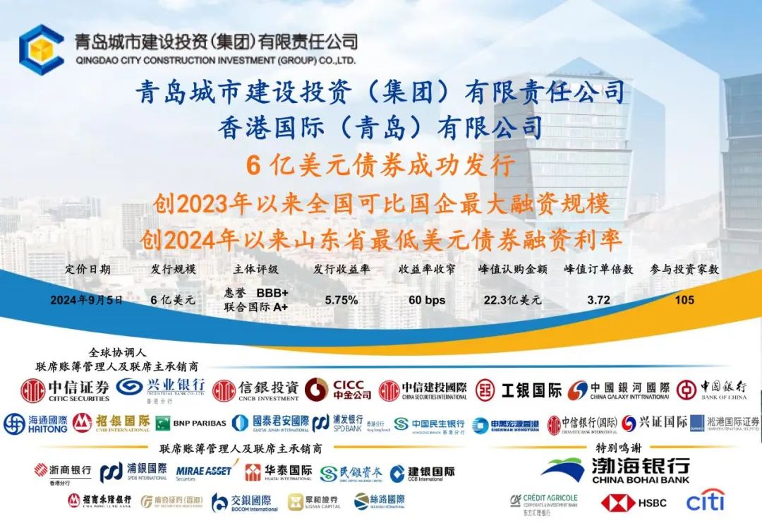 创两“最”!青岛城投6亿美元债券成功发行