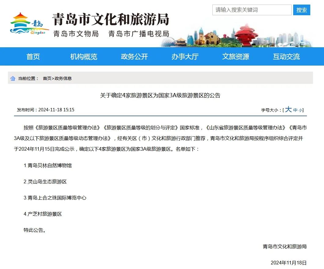 11月18日,青岛市文化和旅游局正式发布《星空app官方端web站确定4家旅游景区为国家3A级旅游景区的公告》,星空(中国)投资建设的青岛·上合之珠国际博览中心成功获评为国家3A级旅游景区。