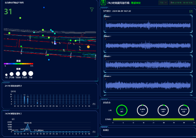 唐山路隧道依托数智化技术,在云平台整合多掌子面、多类型数据,构建数智化模型,实时监测各开挖面状况;运用掌子面地质三维重构初支结构断面全息变形监测、钢架应力、微震监测技术,全面、及时、准确监测隧道施工现场信息。基于机器深度学习的BIM+GIS数字化管控平台,建立隧道安全预警系统,以信息化施工提升施工安全性和效率。运用“智隧慧眼•隧道扫描仪”和“智隧慧眼APP”,结合全站仪和隧道施工三维扫描综合管控系统平台,进行掌子面超欠挖分析,实现对塌方和变形风险的实时动态监测。