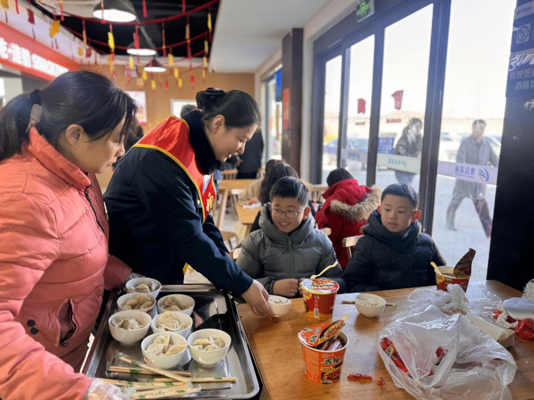 (图为服务区工作人员送上“福”饺)