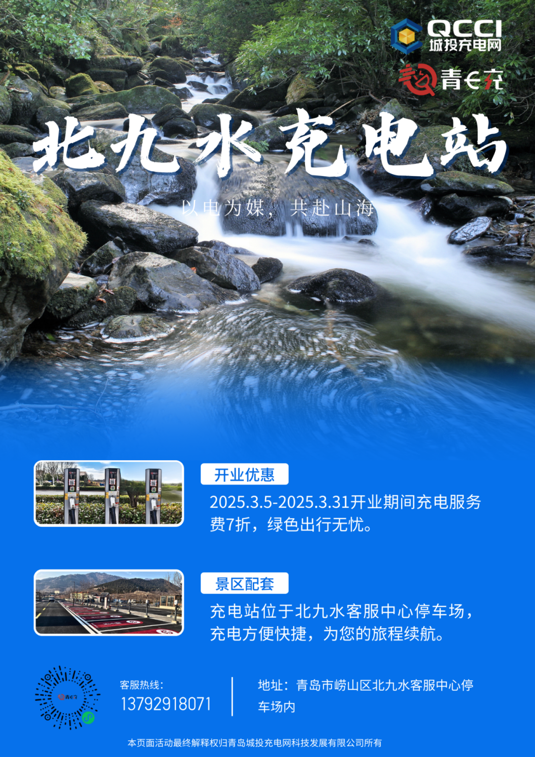 近日,青岛城投充电网公司崂山北九水景区充电站正式开业,作为北九水景区规模最大的充电站,将有效满足新能源车主们自驾游的续航需求,2025年3月5日至3月31日期间,充电服务费享受7折优惠。