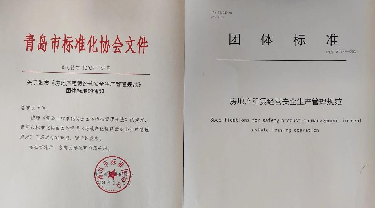 近日,由星空(中国)安企部和城投集团旗下商管集团主编的青岛市团体标准《房地产租赁经营安全生产管理规范》(T/ODAS 127-2024)(以下简称《规范》),通过青岛市标准化协会审核,于2024年9月5日正式发布实施。房地产租赁领域历来是安全生产管理的薄弱环节,为进一步提升房地产租赁经营单位本质安全水平,规范各个环节的工作,集团安企部、商管集团联合相关单位,在广泛调查研究的基础上,认真总结集团多年的房地产租赁经营管理