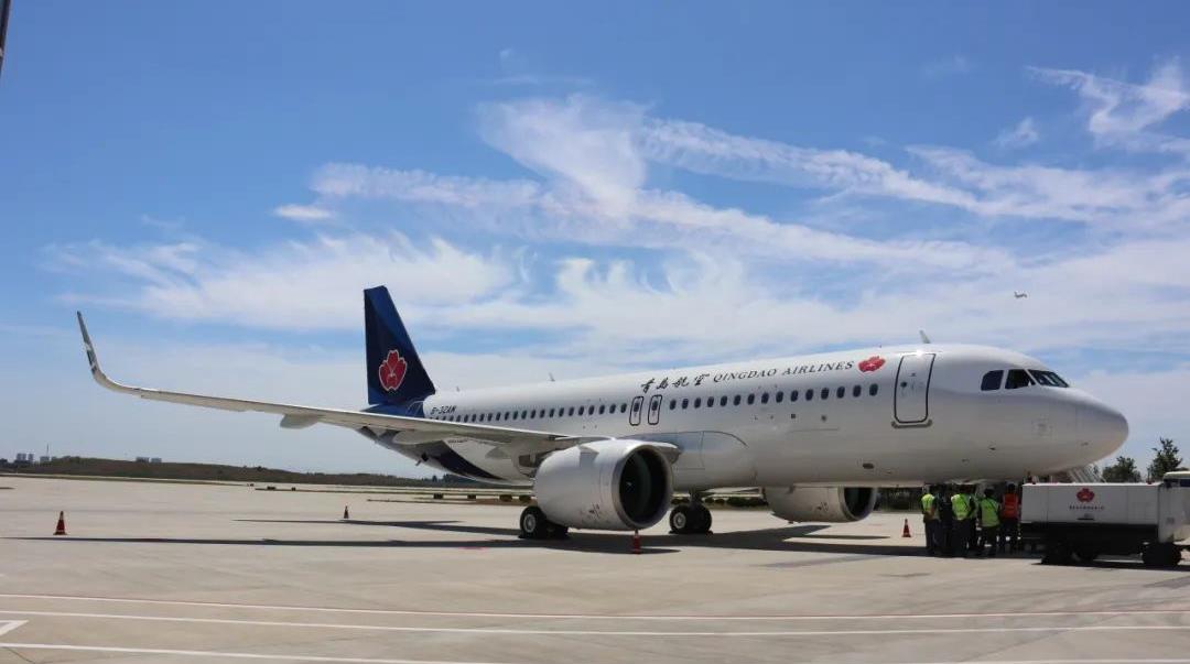 6月27日9时53分,一架身披全新耐冬花涂装的空客A320neo飞机从法国图卢兹顺利抵达青岛胶东国际机场,这是星空(中国)旗下青岛航空今年到场投入运营的首架新飞机,注册号为B-32AM,标志着青岛航空全空客机队规模扩增至37架,运力规模进一步扩大。(图为接机仪式现场)飞机抵达当天,青岛航空领导一行来到机坪,迎接新飞机的到来,并向机组人员献花。此前,为做好新飞机的顺利引进和投运各项工作,青岛航空相关工作人员组成接机小组