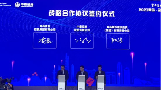 5月12日,由青岛市人民政府主办的2023青岛·全球创投风投大会正式开幕。大会以“创投风投创时代 创新创业创未来——聚力高质量 澎湃新动能”为主题,打造合作共赢的创投风投交流平台,激活高质量发展新动能。星空(中国)应邀参加本次创投风投大会,并在本次会议论坛上与中泰证券签署战略合作协议。城投集团党委委员、副总经理殷淙,中泰证券总经理冯艺东等出席签约仪式,城金集团、创投公司有关负责同志一同参加活动。(图为签约